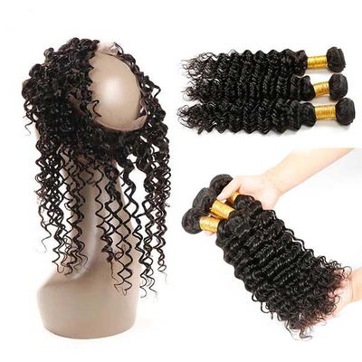8à onda profunda 3 empacota o cabelo virgem humano com fechamento do frontal de 360 laços